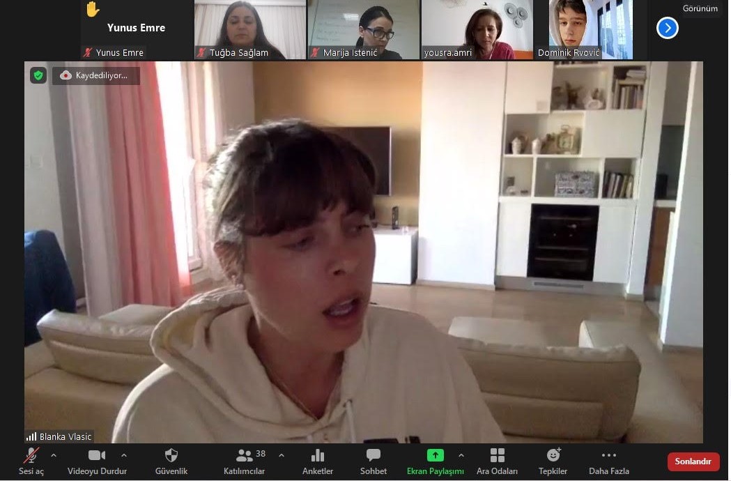 Na drugom ZOOM sastanku bili su prisutni i nastavnici i učenici, a specijalna gošća bila nam je najbolja hrvatska i ponajbolja svjetska skakačica u vis svih vremena, dvostruka svjetska prvakinja i viceprvakinja, evropska prvakinja i svjetska dvoranska prvakinja i ponosna vlasnica dviju olimpijskih medalja Blanka Vlašić.