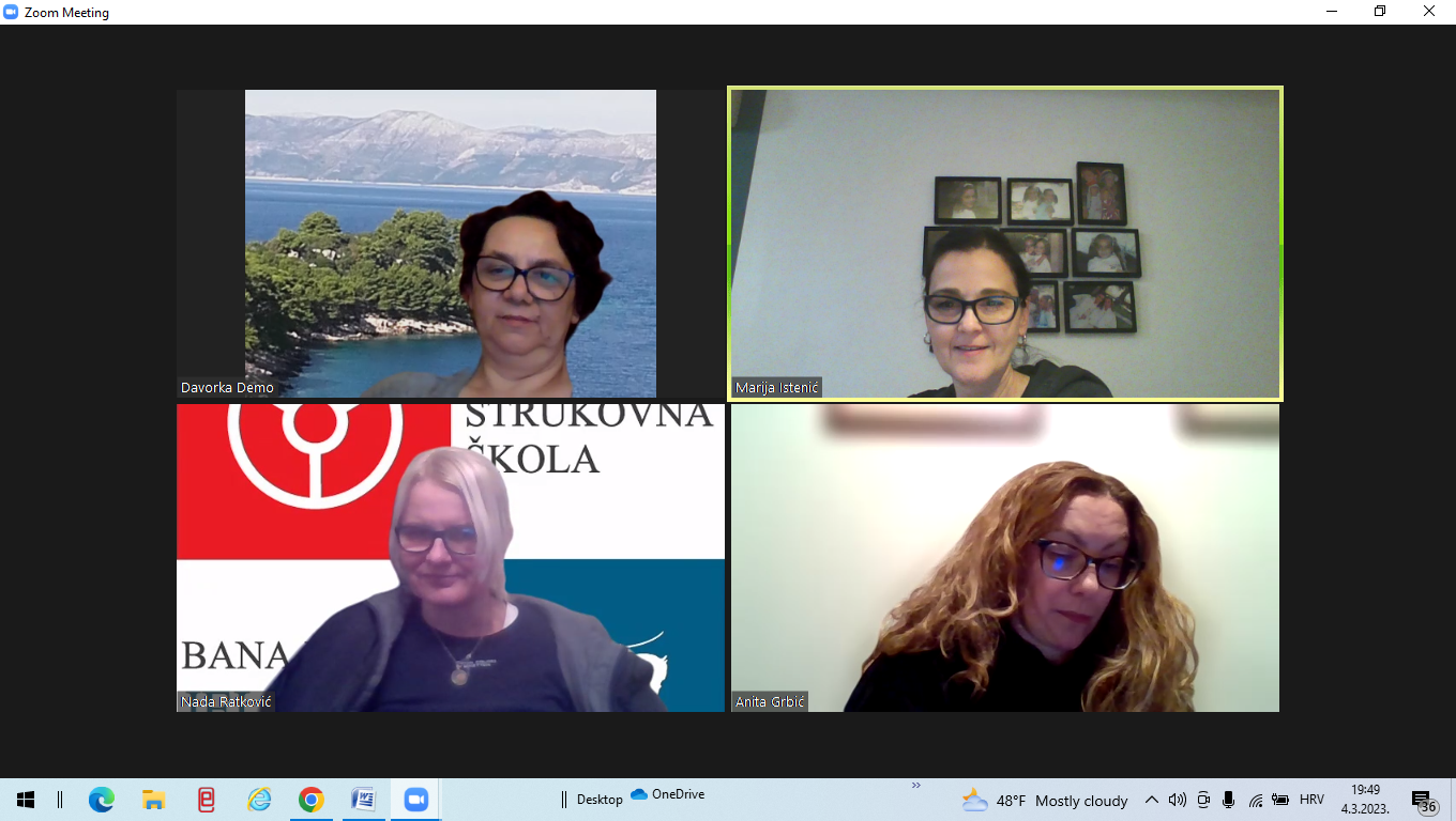 Dana 4. ožujka 2023. preko ZOOM aplikacije održan je zajednički sastanak na kojem su dogovarane daljne aktivnosti vezane za projekt, rokovi u kojima se aktivnosti trebaju odraditi, a dogovorili smo i sljedeći zoom sastanak s našim učenicima.