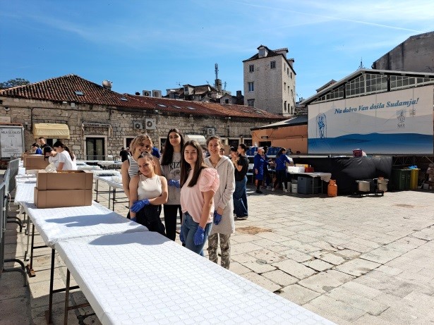 Tijekom ove manifestacije volonteri naše škole pomagali su kuharima u pripremi jela ali i okolnog prostora kako bi se građanima što brže i lakše podijelile porcije ukusnog obroka.