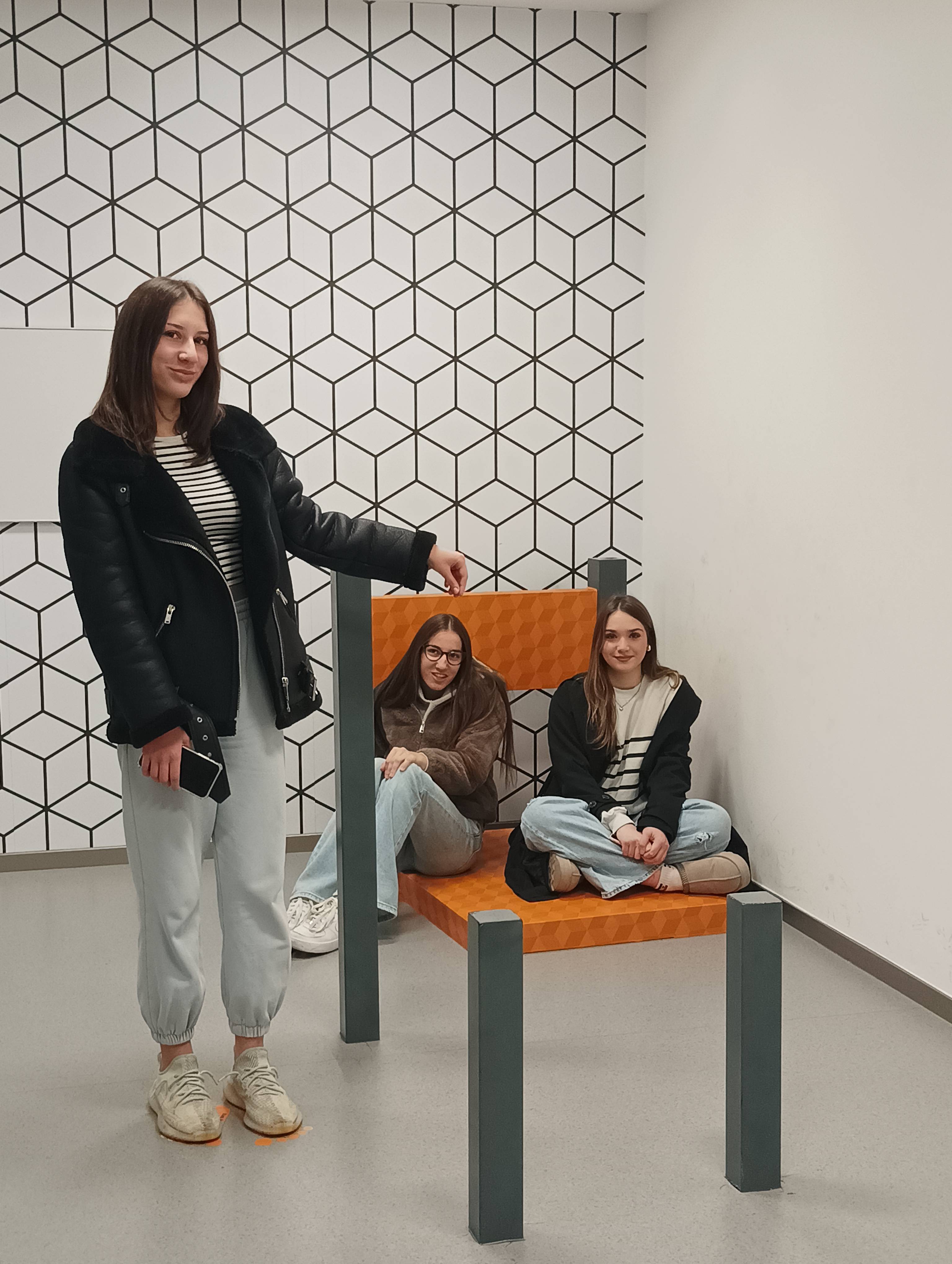 - Učenici oba programa posjetili su Muzej iluzija u Splitu 27. studenog 2024. uz stručnog vodiča. Kroz interaktivne izložbe, poput obrnute sobe, klon sobe i vrtloga, upoznali su se s načinima na koje ljudski mozak interpretira informacije i kako te interpretacije mogu biti zavaravajuće.