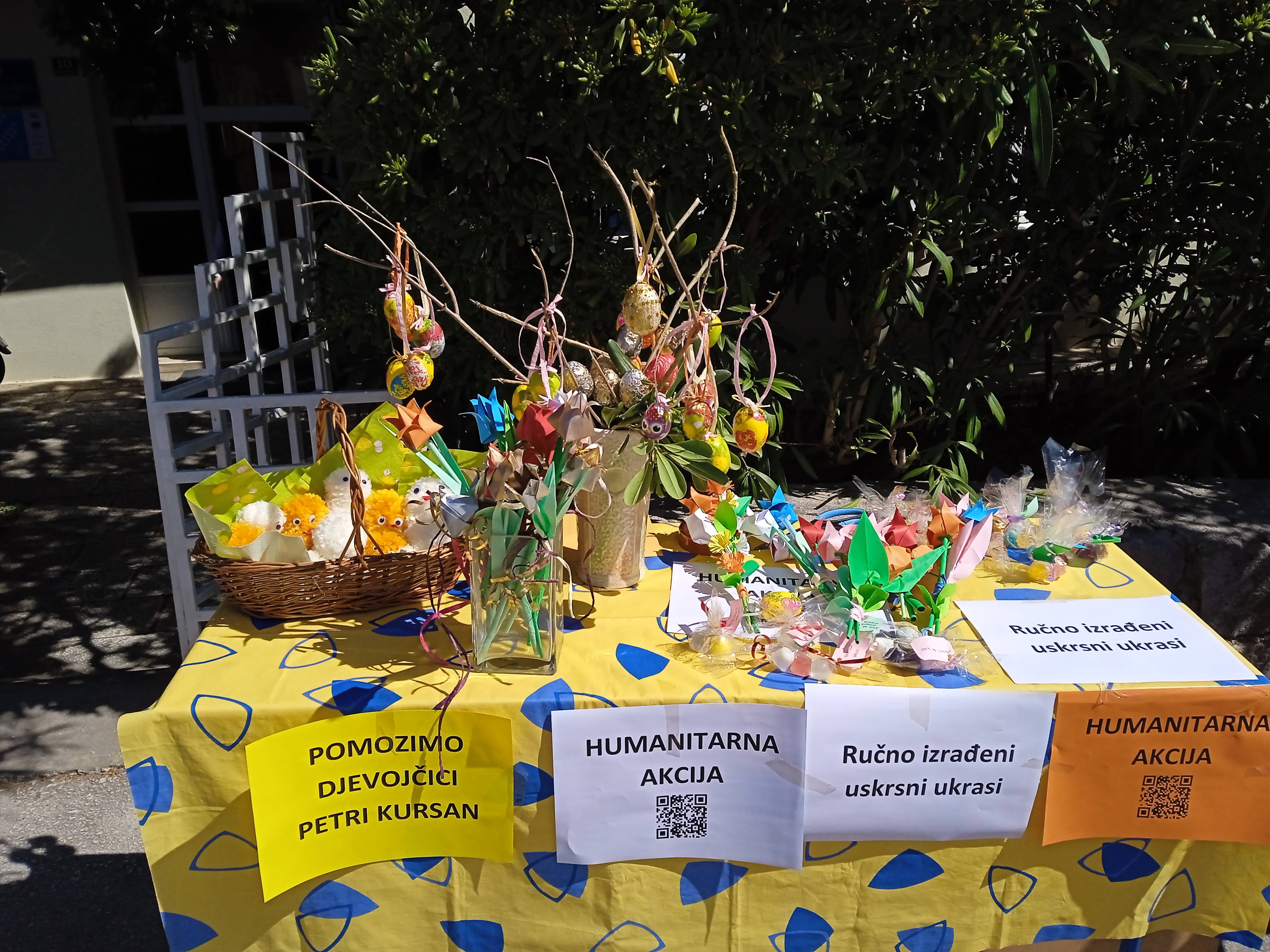Skupljeni novci bit će uplaćeni djevojčici Petri Kursan u okviru humanitarne akcije I Petra bi htjela hodati. Riječ je o 1,5-godišnjoj djevojčici kojoj je potreban niz operacija u Njemačkoj da može stati na noge. Ukrase su izradile učenice trećih i četvrtih razreda uz pomoć knjižničarke Lucijana Pendo i organizaciju Marije Čupić, dok su kozmetički proizvodi djelo naših vrijednih kozmetičarki i njihove nastavnice Sunčice Marčinko. Hvala svima!