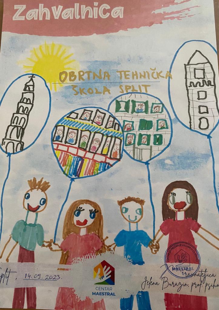 Učenici OTŠ Split su u sklopu projekta “Čuvari baštine”  naziva “Izrada drvenih tradicijskih igračaka”, 2022./2023. šk. god. , za koji su u lipnju na Festivalu izvrsnosti CI SDŽ osvojili prvo mjesto, humanitarnom gestom poklonili sve napravljene igračke štićenicima Dječjeg doma Maestral u Splitu.
