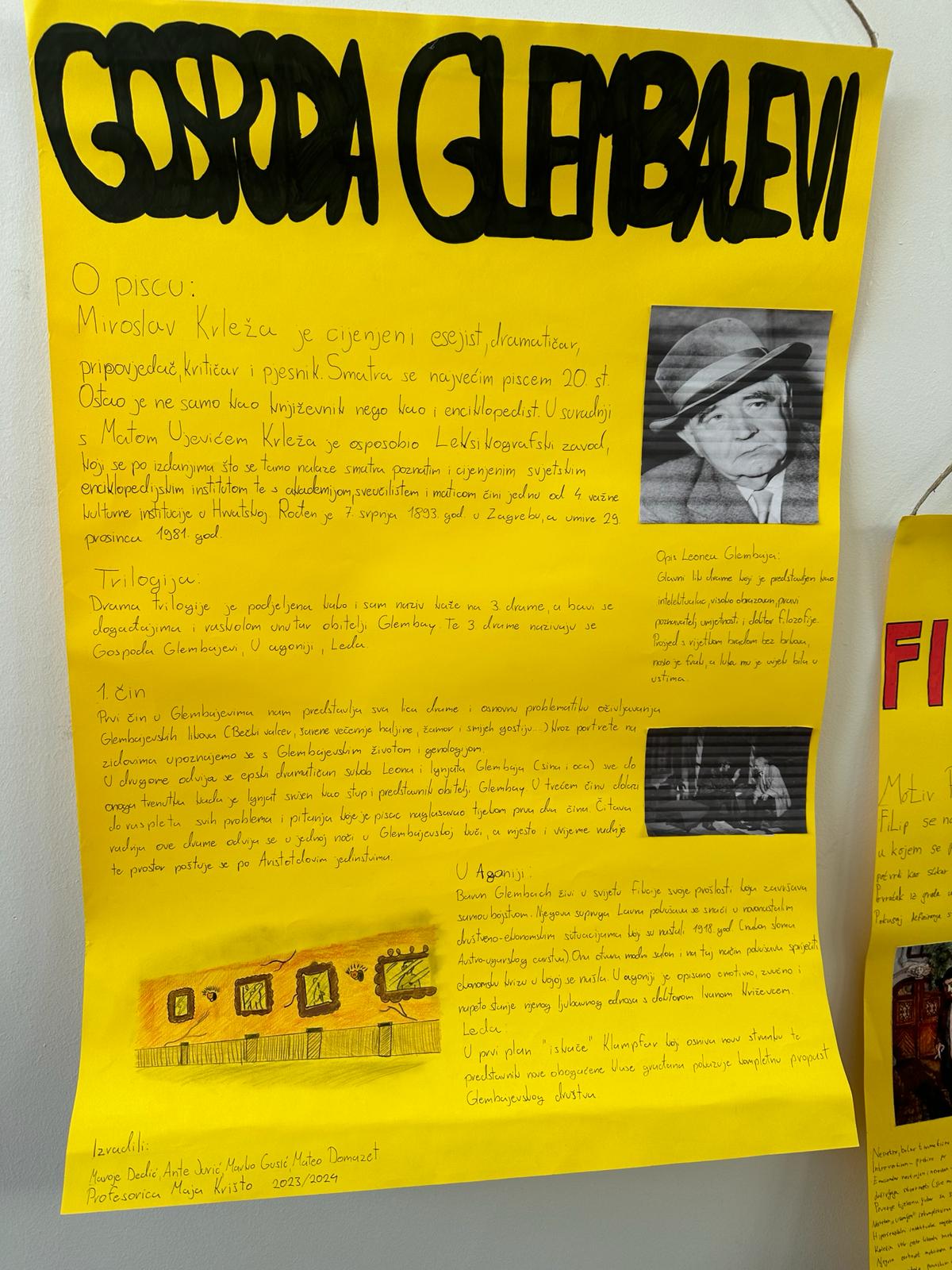 Povodom 130 godišnjice od rođenja slavnog hrvatskog pisca Miroslava Krleže, učenici 4.a razreda, uz koordinaciju nastavnice Maje Krišto, napravili su 5 plakata kojima su prikazali njegov rad te neizmjernu vrijednost Krleže za hrvatsku književnost.
