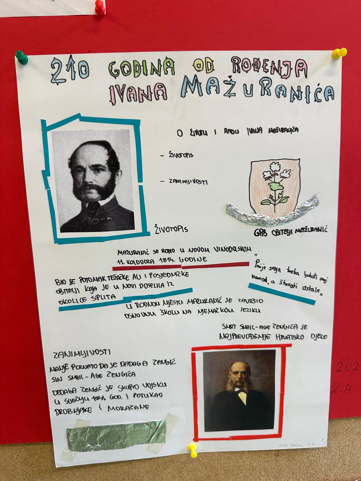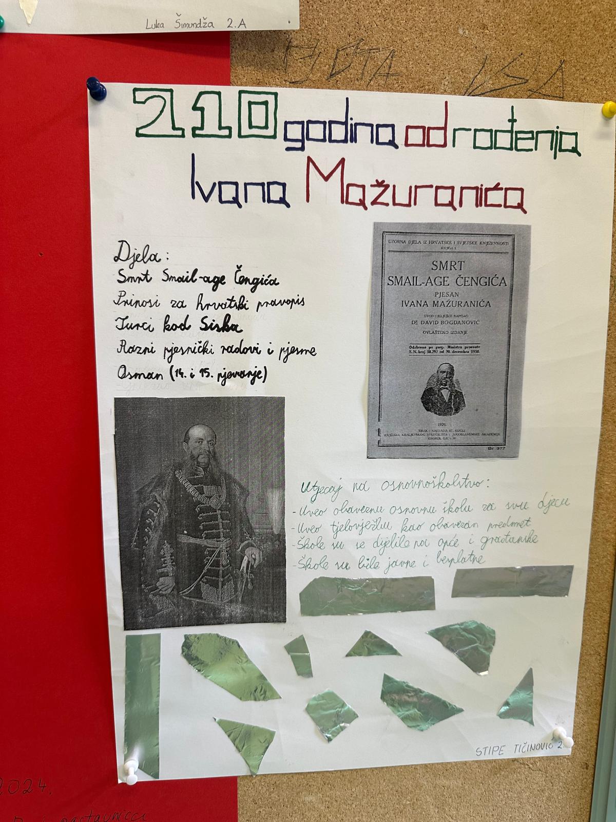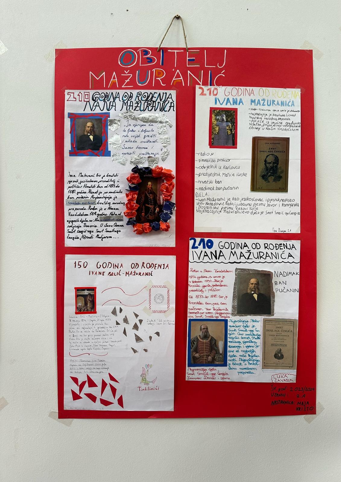 Povodom 150 godina od rođenja hrvatske spisateljice Ivane Brlić-Mažuranić i 210 godina od rođenja njenog djeda Ivana Mažuranića, prvog hrvatskog bana pučanina, učenici 2. A razreda su kroz projekt “Književni vremeplov”, pod mentorstvom nastavnice Maje Krišto, prikazali život i književno stvaralaštvo naših književnika