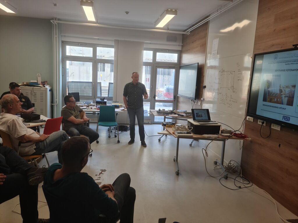 Gost predavač Ivan Marasović, doc. dr. s Fakulteta elektrotehnike, strojarstva i brodogradnje održao je predavanje i pokazao najnovije aktualnosti u fotonaponskim sustavima te su polaznici mogli izvršiti mjerenja i ispitivanja na novim modernim instrumentima koji se koriste za pripremu i optimiziranje fotonaponskih elektrana.