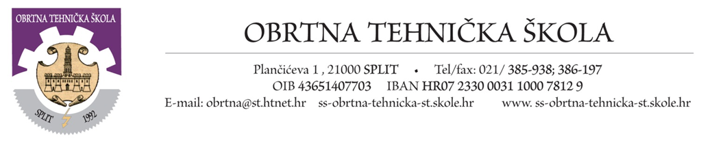 Split, 17. veljače 2016. g. P O Z I V N I C A Poštovani, pozivamo Vas na Međužupanijsko natjecanje u zanimanjima Instalater grijanja i klimatizacije i Vodoinstalater, koje će se održati 19. 2. 2016. godine u Obrtnoj tehničkoj školi u Splitu, Plančićeva 1. Vremenik, program i potrebne informacije pogledajte na našim stranicama pod karticom Natjecanja. Lijep pozdrav! Ravanatelj: Renato Žuvela, dipl. ing.