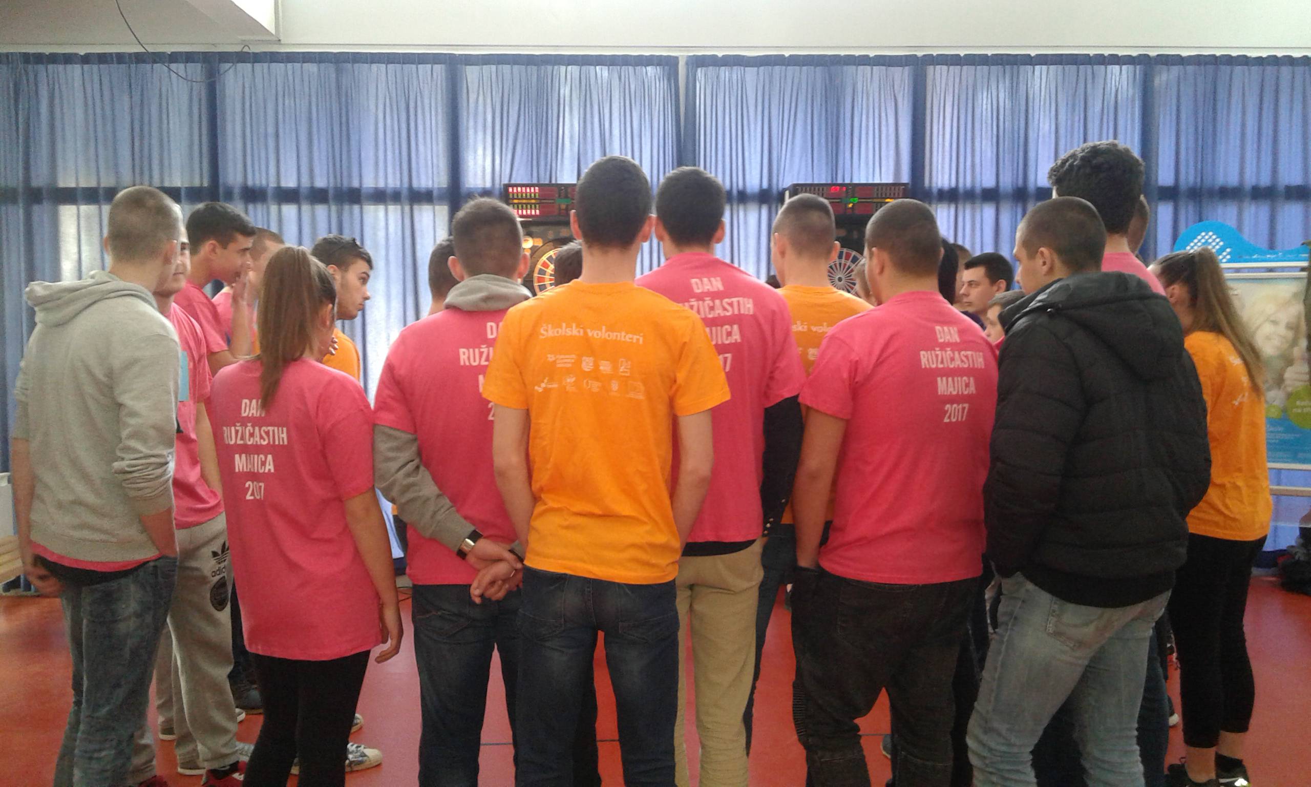 U srijedu, 22.2.2017. obilježili smo Dan ružičastih majica, kojim smo upozorili na problem vršnjačkog nasilja. Ove godine organizirali smo turnir u pikadu u koji su se uključili učenici još šest srednjih škola iz našega grada (Elektrotehnička škola, I.gimnazija, Zdravstvena škola, Škola za dizajn, grafiku i održivu gradnju, Srednja prometna tehnička škola, Obrtna tehnička škola). Turnir u pikadu smo realizirali u suradnji sa Pikado savezom Splitsko-dalmatinske županije i pikado klubom Split Londra - prošlogodišnjim europskim prvakom. Natjecanje u pikadu vodiili su predsjednik pikado saveza Eduard Akrap i nastavnik TZK Teo Marinković. Postavili smo i izložbu fotografija poznatih i javnih lica koji podržavaju borbu protiv nasilja, a dio je kampanje „Nasilje prestaje ovdje“ koju provodi Centar za edukaciju i prevenciju nasilja iz Đakova. Pobjednici turnira bili su učenici Prometne tehničke škole Split te im ovim putem još jednom čestitamo! Svim sudionicim i gledateljima zahvaljujemo na suradnji i ugodnom druženju.