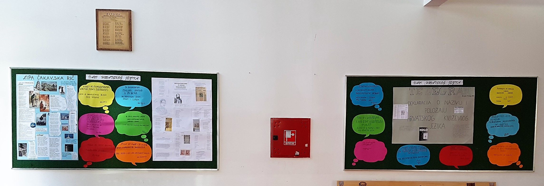 U Hrvatskoj se svake godine, od 11. do 17. ožujka, slave Dani hrvatskoga jezika. Ta kulturna manifestacija utemeljena je odlukom Hrvatskoga sabora 1997. godine, na spomen Deklaracije o nazivu i položaju hrvatskog književnog jezika. Deklaracija o nazivu i položaju hrvatskog književnog jezika objavljena je u tjedniku „Telegram“ 17. ožujka 1967. s potpisima osamnaest hrvatskih znanstvenih i kulturnih ustanova, a njome se željela osigurati opstojnost hrvatskoga jezika i njegova ravnopravnost s ostalim jezicima u tadašnjoj Jugoslaviji. Deklaracija je bila borba za samostalnost hrvatskoga jezika, njegove bogate i osebujne kulturne baštine, slavna borba da hrvatski narod svoj jezik naziva vlastitim, a ne tuđim imenom. Ovogodišnji Dani hrvatskoga jezika u našoj su školi obilježeni prigodnim tematskim satima i izvannastavnim aktivnostima. Osim što su se imali priliku upoznati s izvornim tekstom Deklaracije, učenici su na zabavnom putovanju kroz hrvatsku književnu baštinu otkrivali najljepše stihove posvećene hrvatskom jeziku, s posebnim naglaskom na „lipu čakavsku rič“. Organizirana je i literarna radionica, kao i mala škola glagoljice na kojoj su učenici zapisivali svoje misli o jeziku najstarijim slavenskim i hrvatskim pismom. Literarno - likovni radovi naših učenika, kao i umjetnička replika prvotiska „Horvatske domovine“ na drvu, izloženi su u školskom predvorju, gdje se mogu pogledati do petka, 31. ožujka.