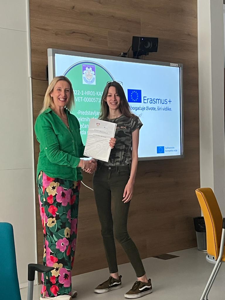 Učenici i nastavnici koji su sudjelovali u projektu Erasmus+2022 u tekućoj školskoj godini predstavili su najzanimljivija iskustva s projekta učenicima i nastavnicima Obrtne tehničke škole. To je bio i oproštaj od učenika koji završavaju svoje školovanje. Dio atmosfere donosimo kroz nekoliko fotografija.