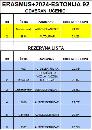 REZULTATI NATJEČAJA- DUGOROČNA MOBILNOST UČENIKA U ESTONIJU