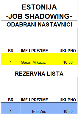 REZULTATI NATJEČAJA-MOBILNOST NASTAVNIKA U ESTONIJU