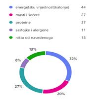 Istraživanje je pokazalo da 67% učenika samostalno kupuje namirnice, a 72 % ispitanika zna protumačiti nutritivne deklaracije na proizvodima. Na slici je vidljivo da se najčešće provjerava energetska vrijednost i količina proteina u nekoj namirnici. Ne obraćaju pozornost na alergene u hrani jer na sreću je samo jedan ispitanik alergičan na orašaste plodove.