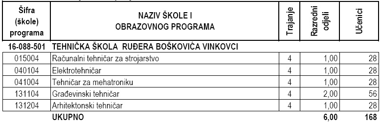 - upis učenika u srijedu, 26. kolovoza 2009., od 8 sati i četvrtak, 27. kolovoza 2009., od 8 sati
