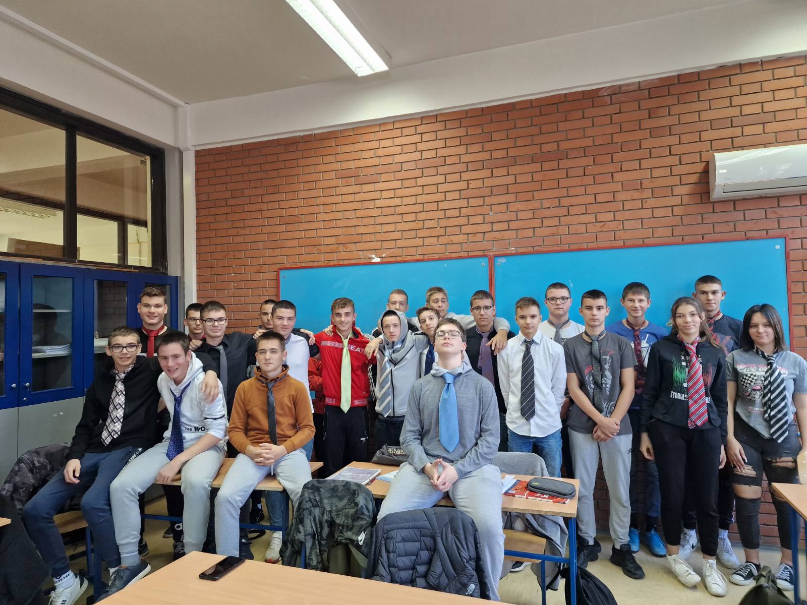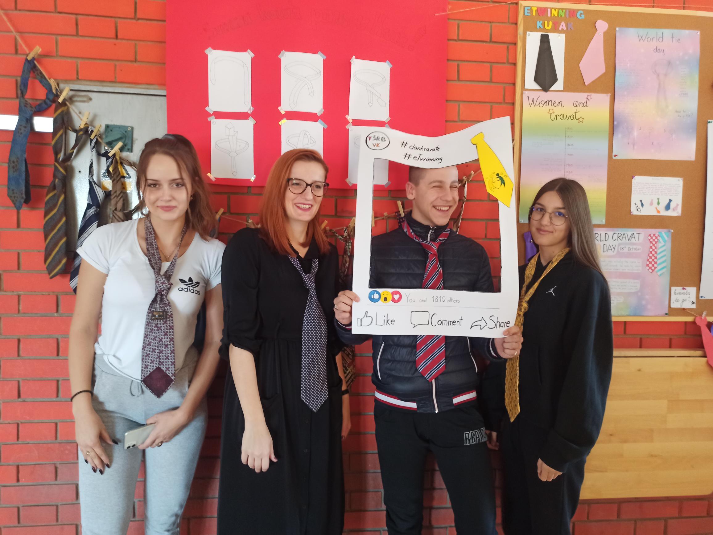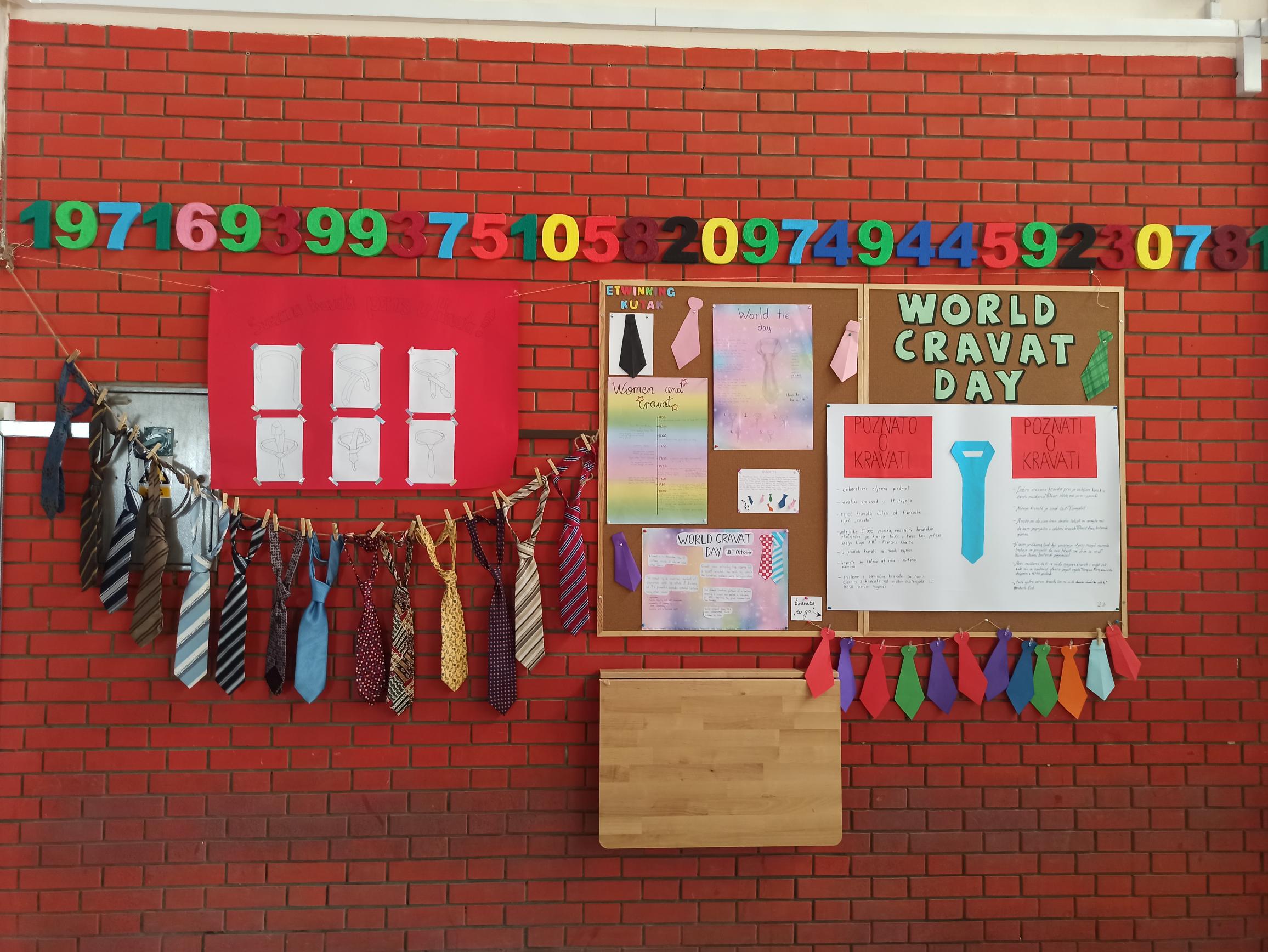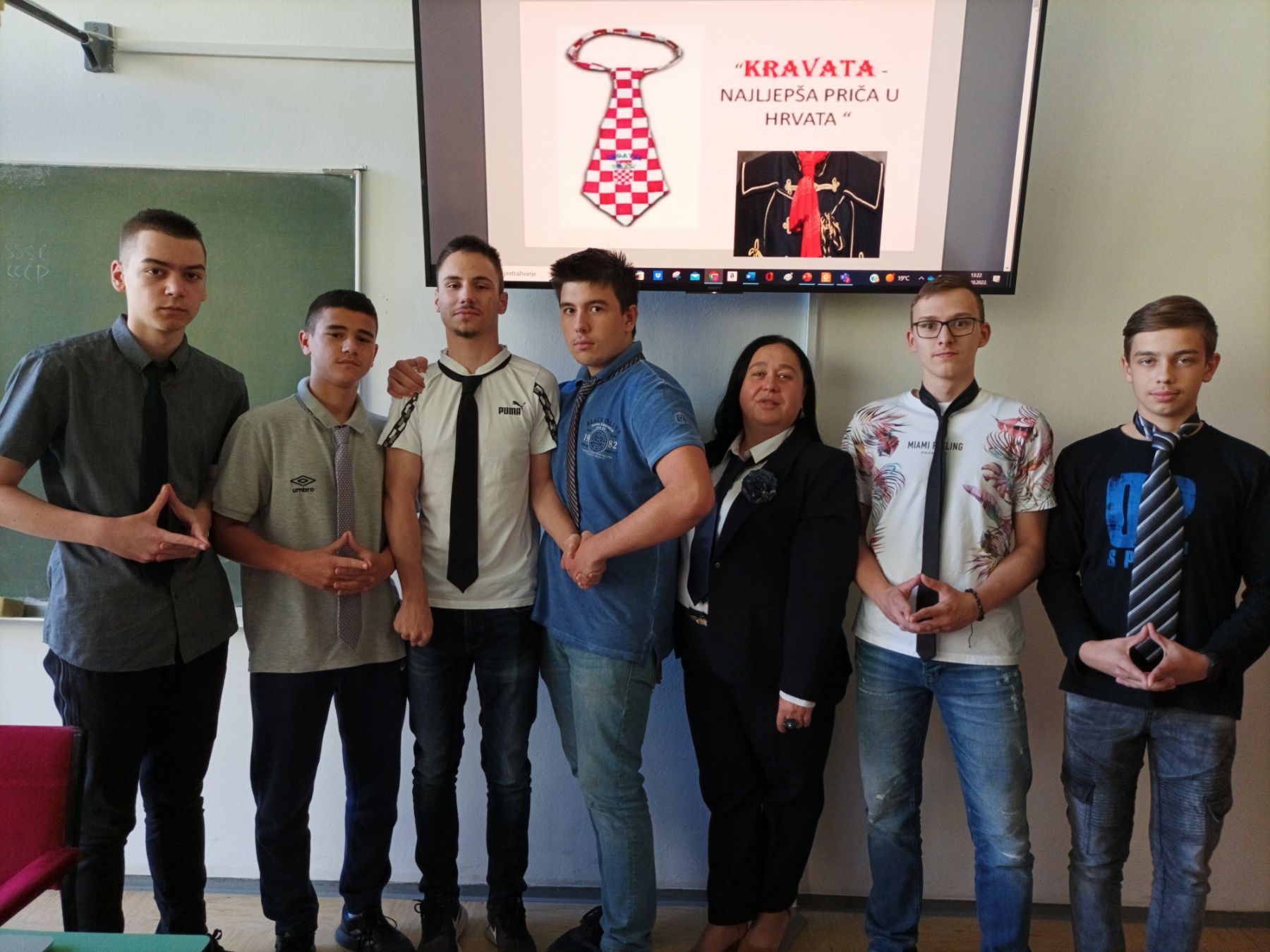 Učenice i učenici naše škole i ove godine su kroz radionice na nastavi hrvastkog i stranih jezika, kao i na satima razredne zajednice učili zanimljivosti o kravati, izrađivali plakate, kao i vlastite kravate od papira i naravno učili vezati kravatu.