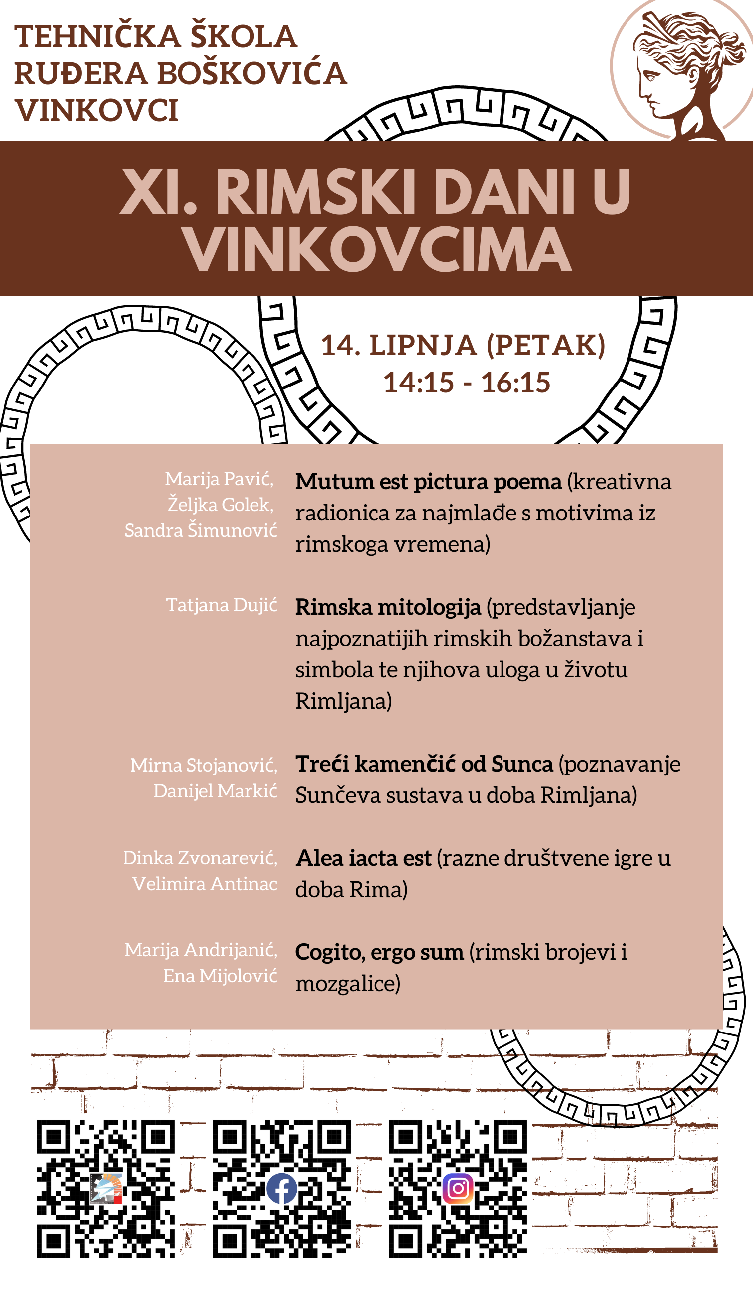 U petak, 14. lipnja, sjajno smo se proveli na Rimskim danima uz pregršt zanimljivih aktivnosti i radionica koje su marljivo pripremali naši učenici i nastavnici. U dobroj zabavi i učenju vrijeme nam je brzo prošlo. Od intrigantnih priča iz rimske mitologije, učenja o Sunčevom sustavu u doba Rimljana, radionice s rimskim motivima za najmlađe posjetitelje pa do raznih društvenih igara, mozgalica i igranja s rimskim brojevima. Sve to, ali i puno više, mogli su vidjeti naši posjetitelji koji su se sa zanimanjem uključili u naše aktivnosti...