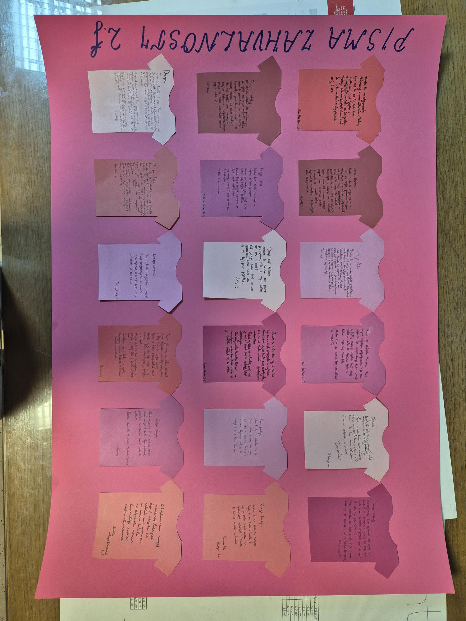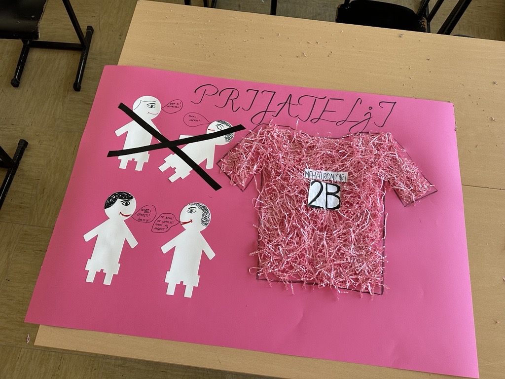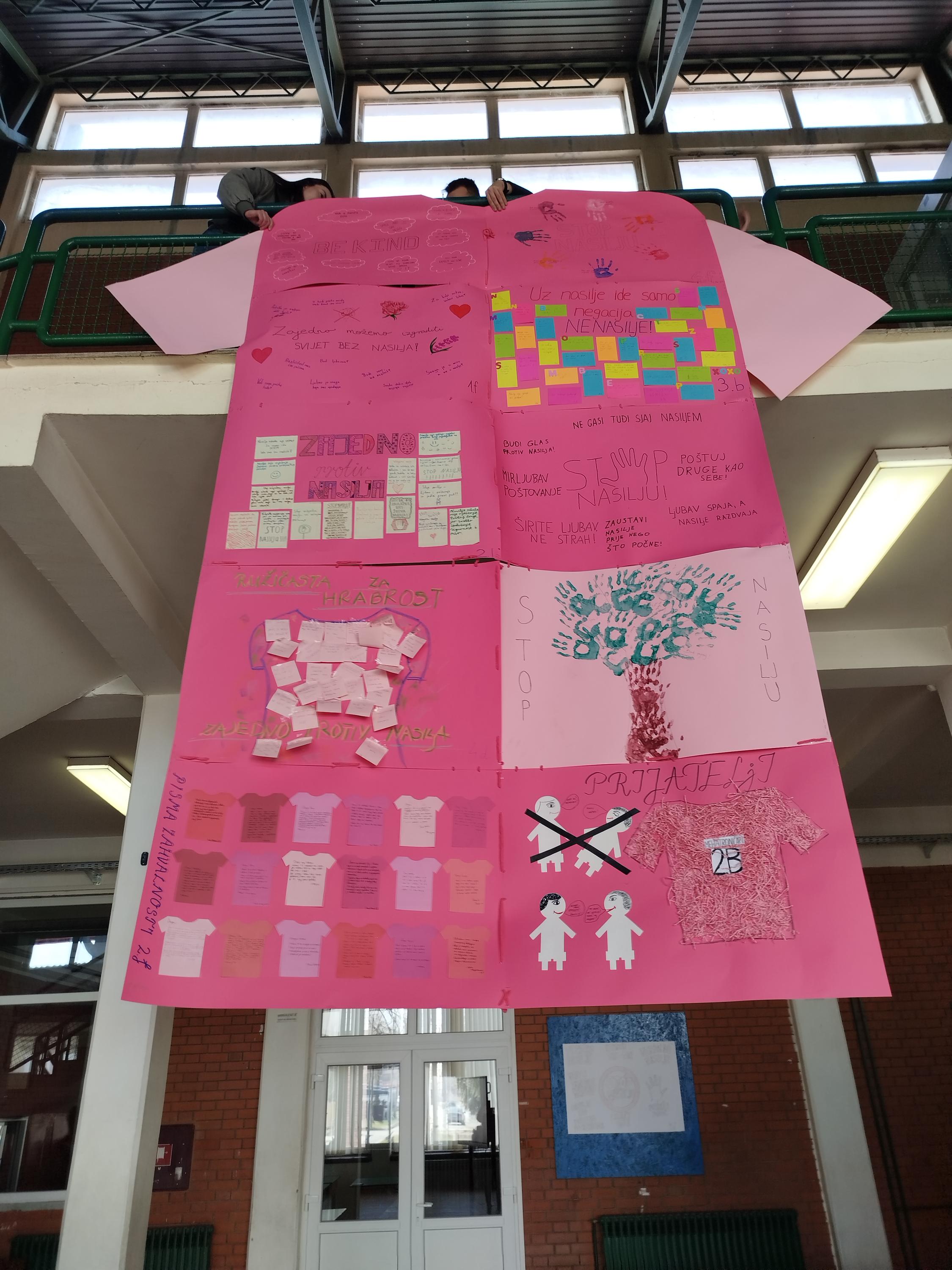 Zajednička tema bila je izraditi plakat sa pozitivnim porukama i primjerima koji će postati dio jednog velikog plakata u obliku ružičaste majice. Majica od čak 3,5 metara ukrasila je školski hol kao simbol nenasilja i dobrote, te podsjetnik na važnost uvažavanja i jednakosti u svakom obliku.