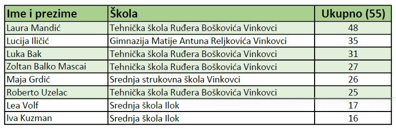 Sve rezultate možete vidjeti na stranicama Infokupa.