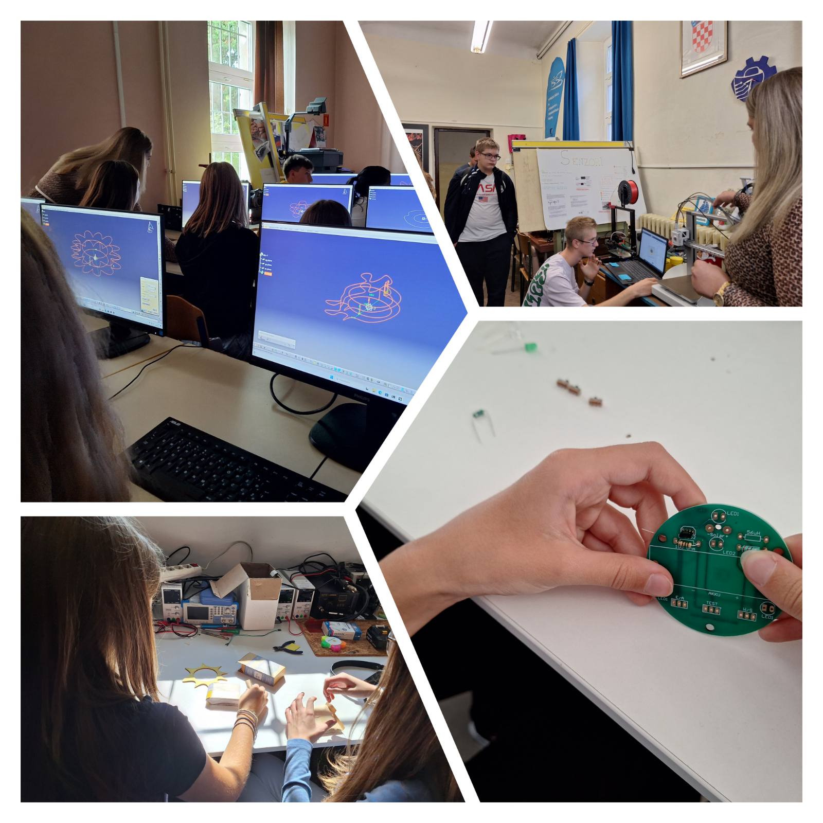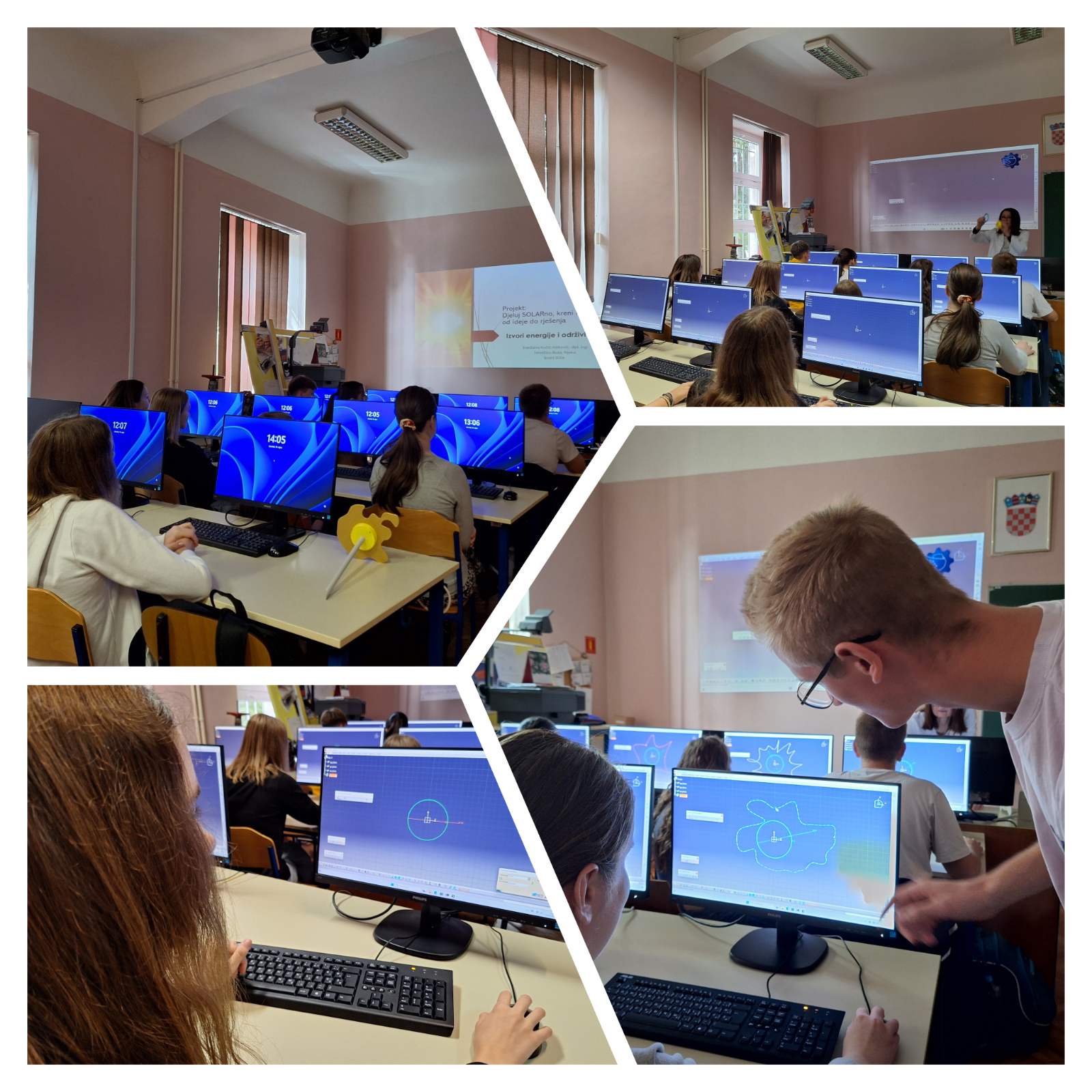 U prvoj u fazi učenici zanimanjem slušali predavanje o obnovljivim izvorima energije, nadahnuti idejom o stvaranju solarnih lampi koje koriste sunčevu energiju. Nakon dobivanja osnovnih informacija, prešli su na praktični dio radionice. U drugoj su fazi, koristeći program Catia, nacrtali dijelove potrebne za izradu solarnih lampi te pokazali svoju kreativnost kako bi dizajnirali funkcionalan proizvod koji se isprintao na 3d printerima. Treća je faza obuhvaćala spajanje dijelova lampe i provjeru funkcionalnosti.