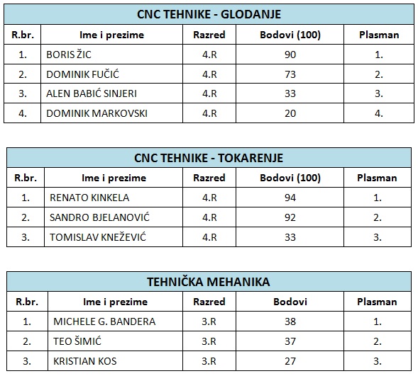 Učenici su postigli sljedeće rezultate: