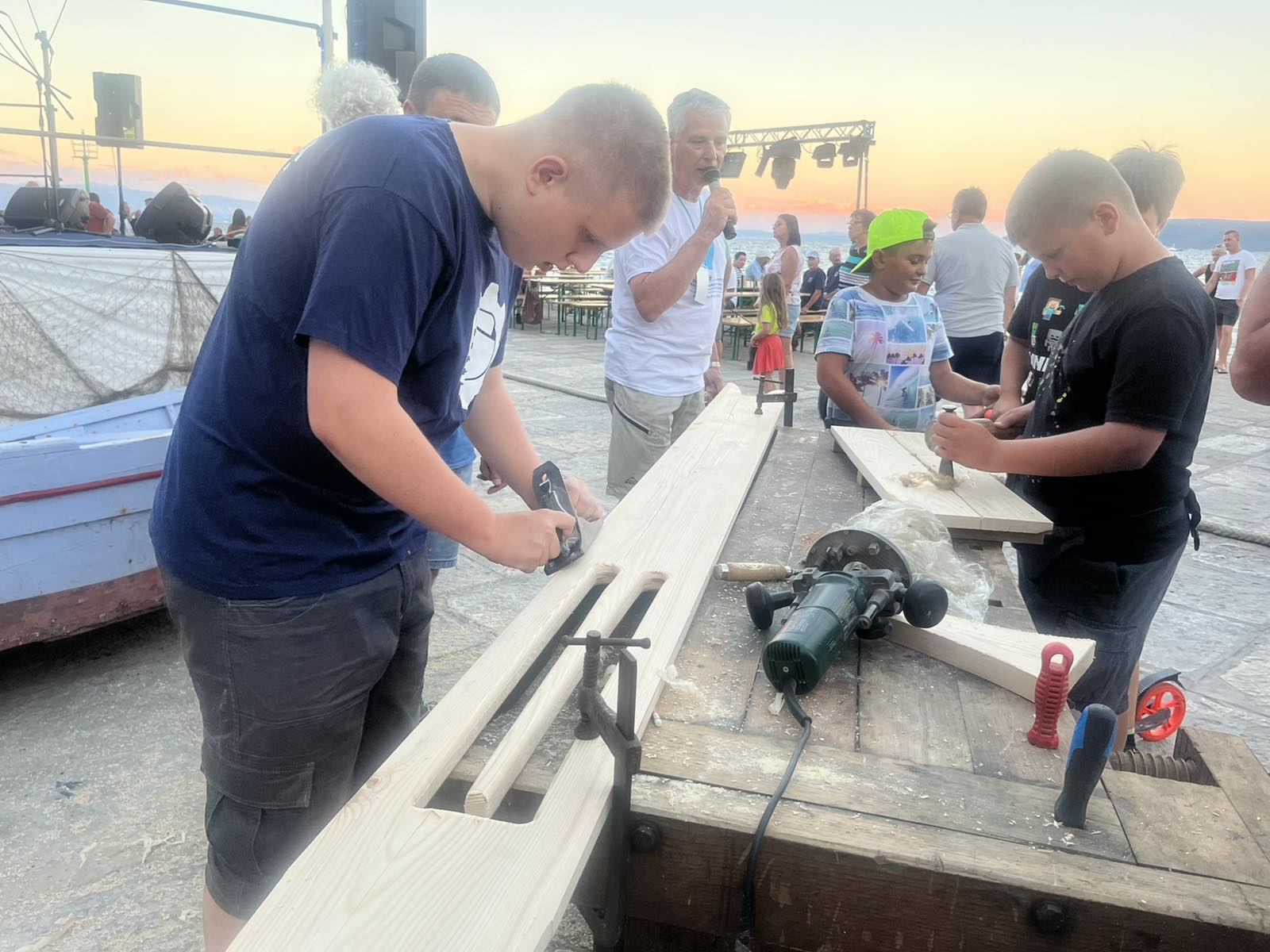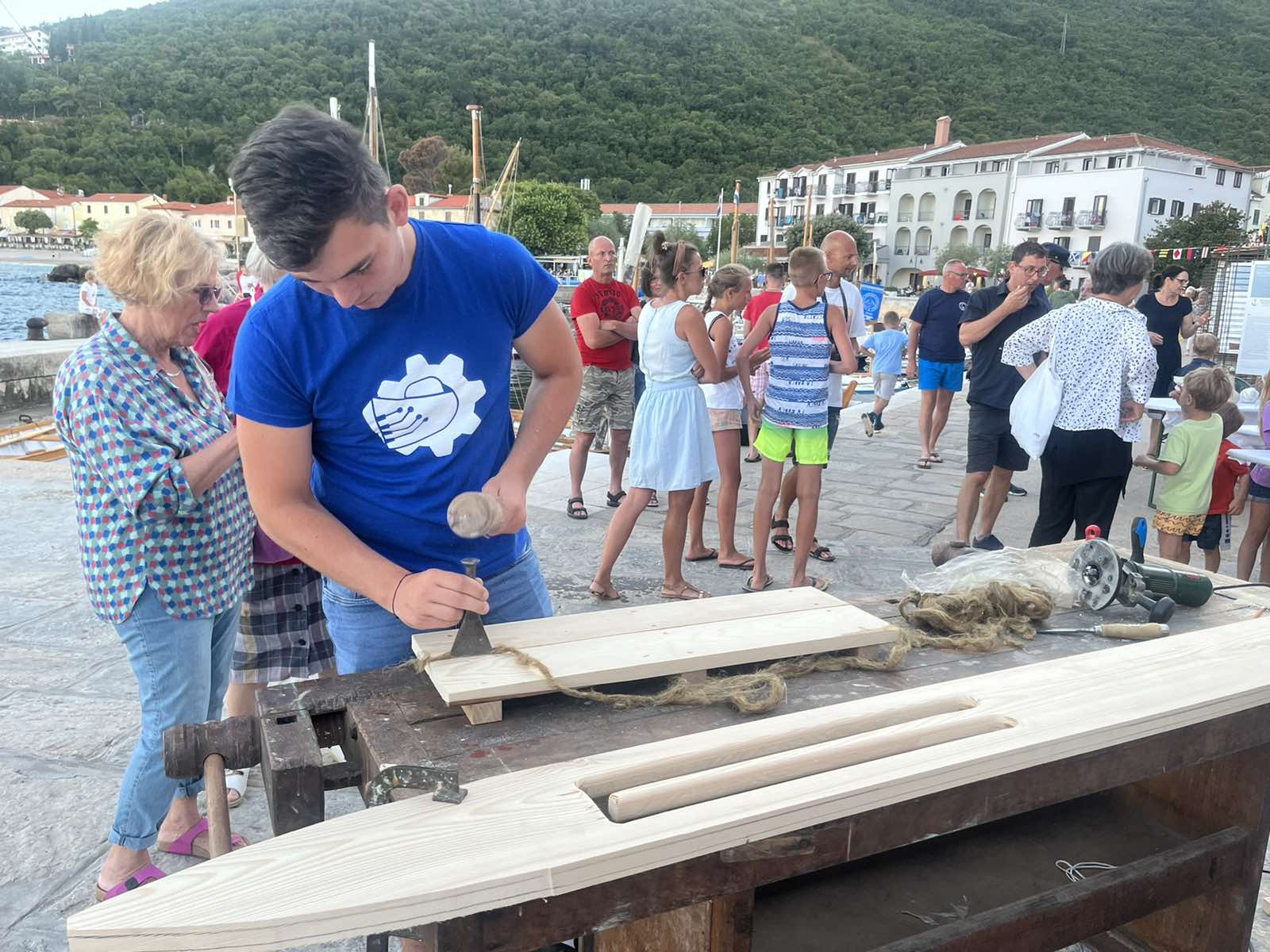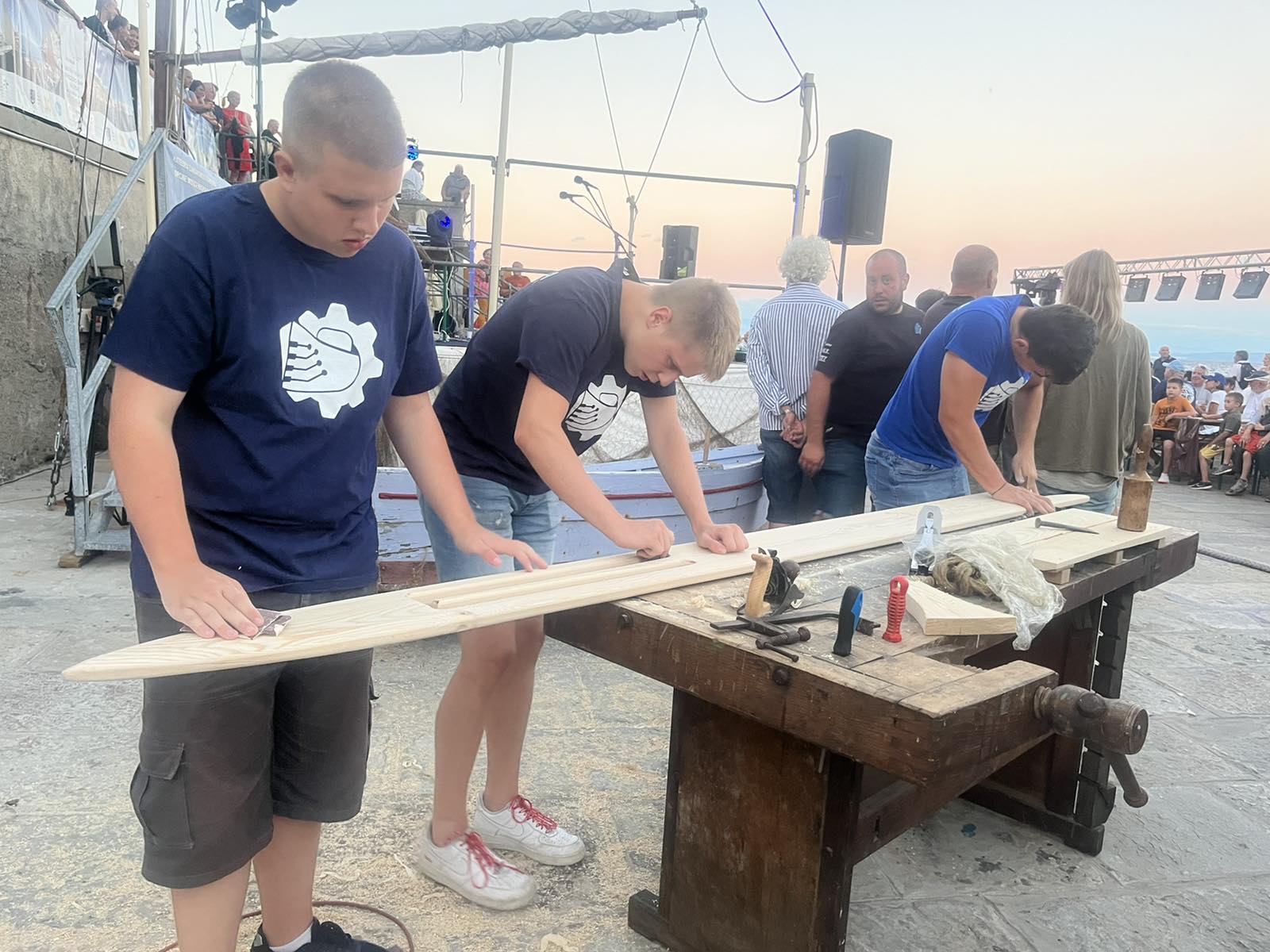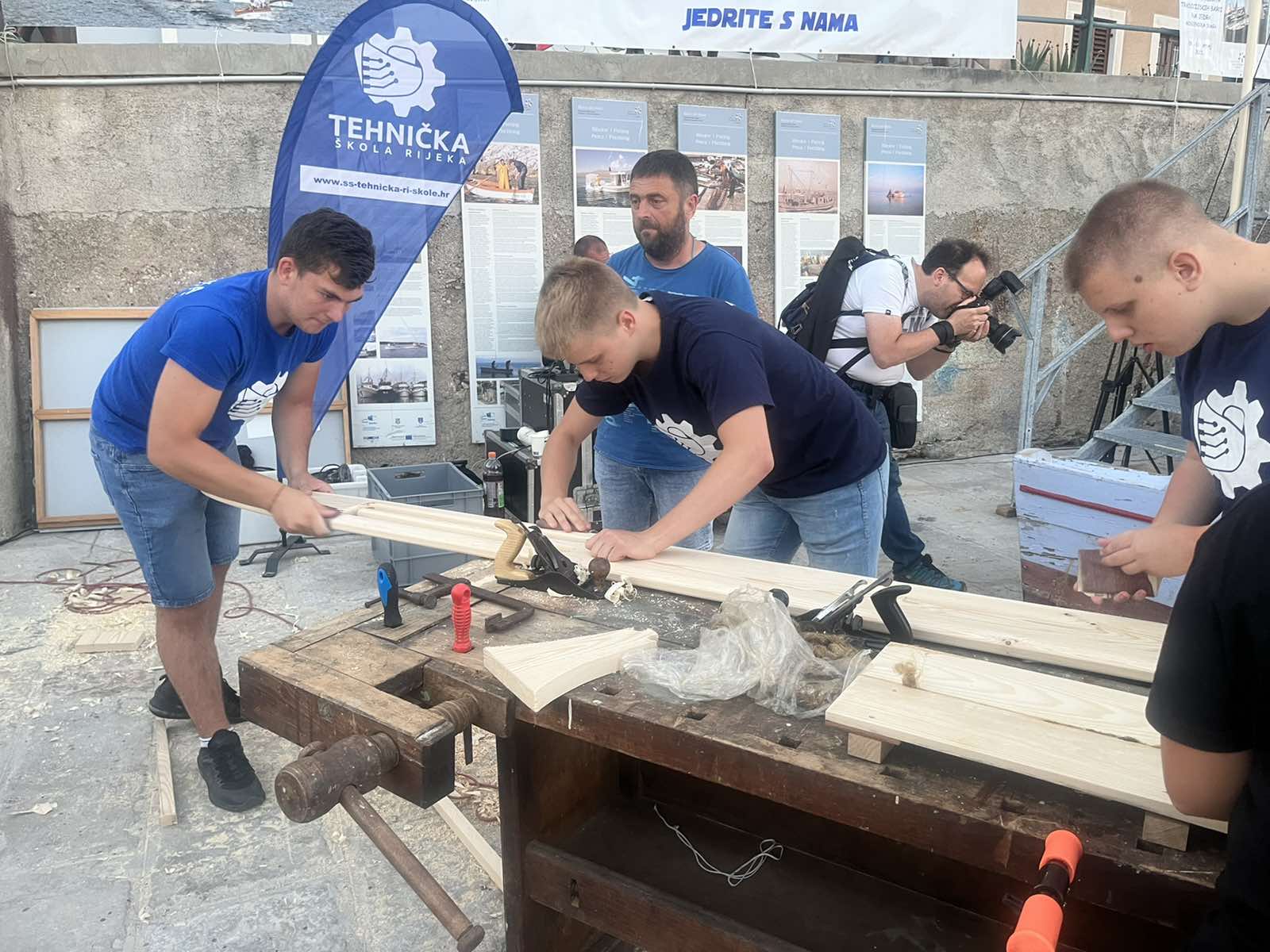 U petak, 08.07. učenici smjera brodograđevni tehničar su pod vodstvom profesirice Ljiljane Domazet i brodograditelja Lorisa Rubinića, u sklopu 14. Smotre i regate tradicijskih barki na jedra Mala barka štoria od mora, sudjelovali u pokaznoj radionici tradicijskih pomorskih vještina. Pokazali kako se šuperaju platice, te su izradili mamutsku iglu za pletenje i popravak ribarskih mreža.