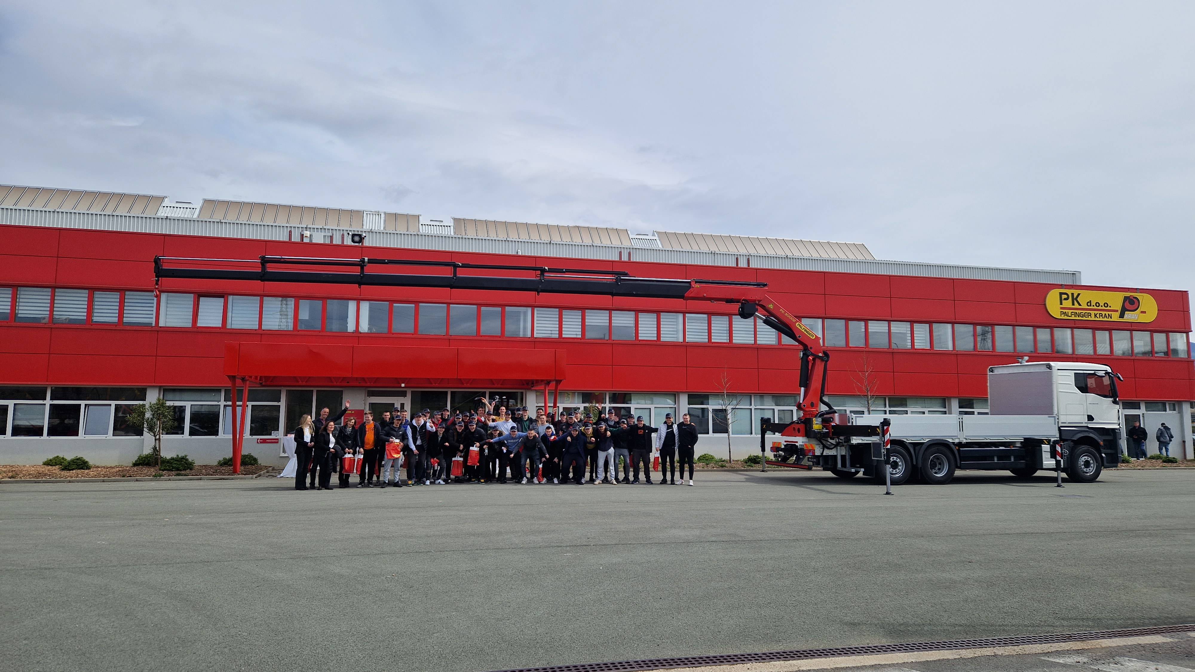 "Dana 19. travnja 2023. učenici 4.M i 4.R razreda, u pratnji profesora Snježane Kućić-Mirković i Damira Franulovića, su bili na terenskoj nastavi u posjetu firmi „PK d.o.o. - Palfinger kran“, koja se bavi proizvodnjom hidrauličnih kamionskih nadogradnji, prikolica i poluprikolica.