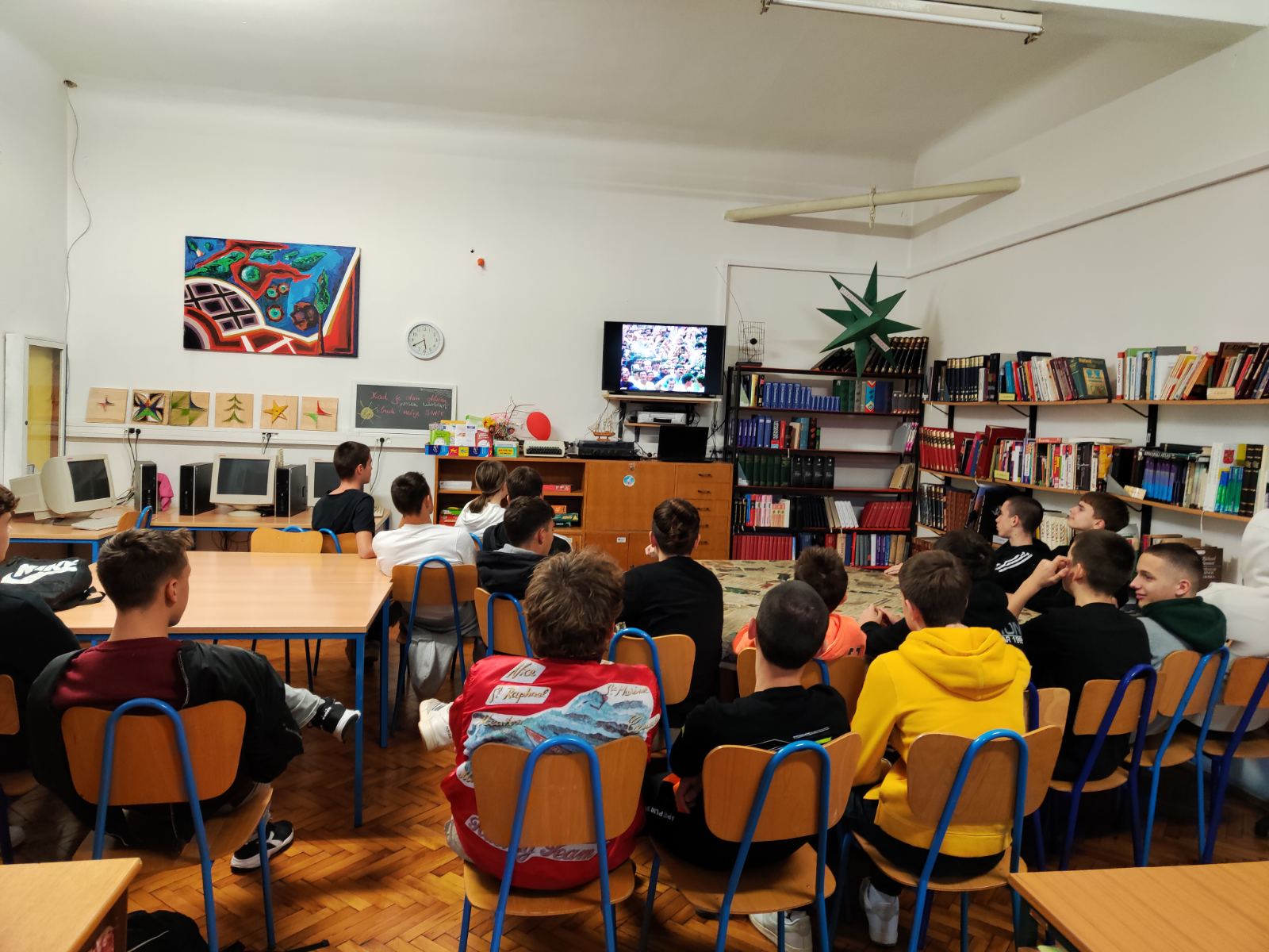 Učenici 1.m razreda su u sklopu Sata razrednog odjela u prostoru školske knjižnice pogledali dokumentarni film Vukovar 1991.