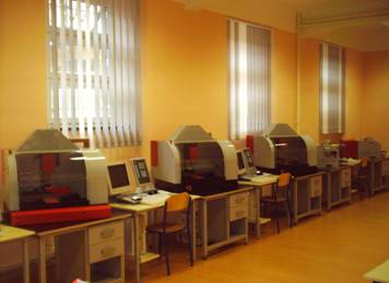 U učionicama za CNC i HIP instaliran je po jedan industrijski robot (manipulator) koji služi za obuku programiranja robota u proizvodnim procesima. Roboti su proizvod firme INTELITEK a podržani su programom za upravljanje SCORBOT i programom za prezentaciju i upravljanje ROBOCELL. Opremljeni su vrhunskomi upravljačkom jedinicom, perifernim uređajima (pokretna traka i okretni stol) i senzorima.