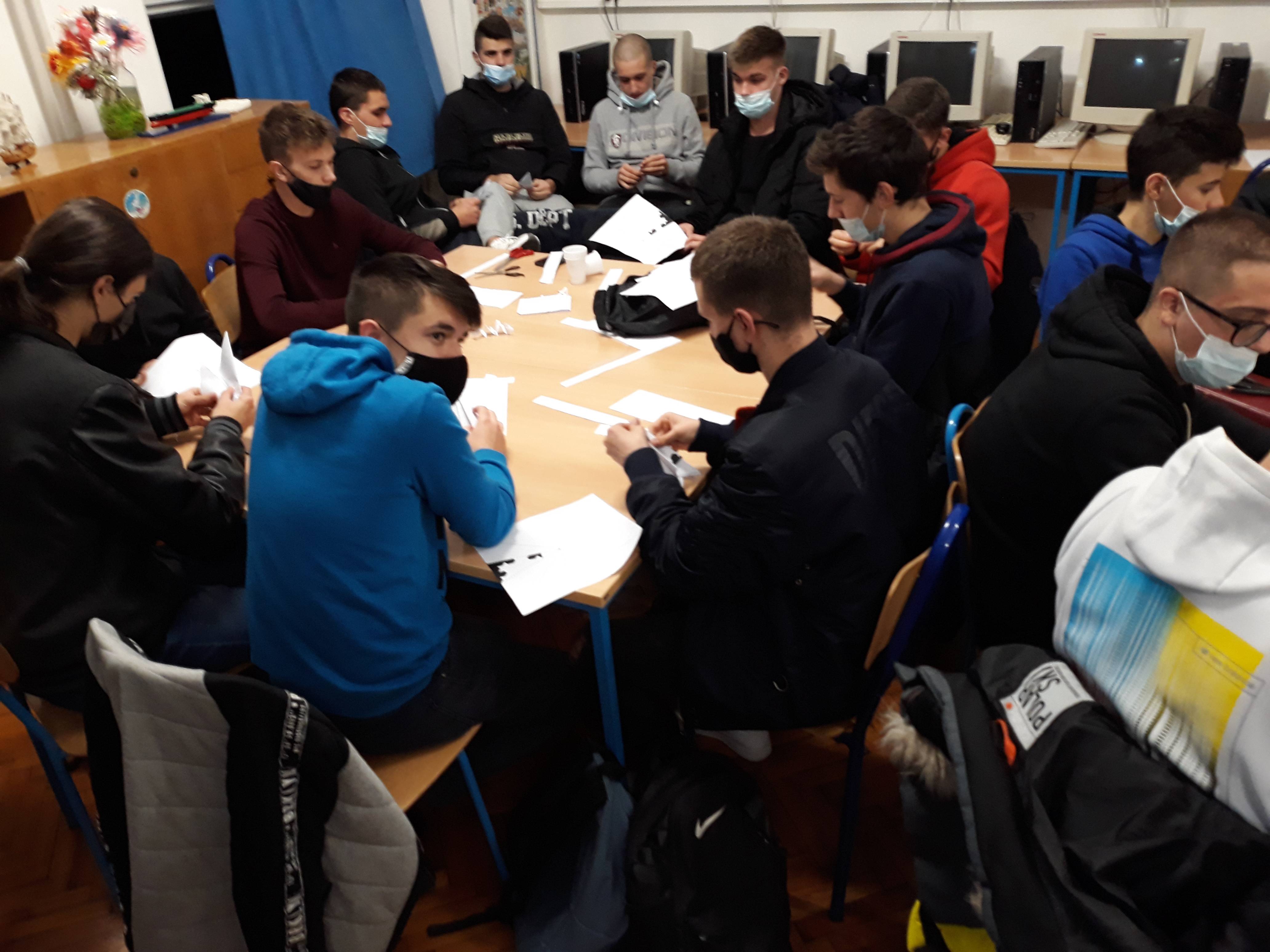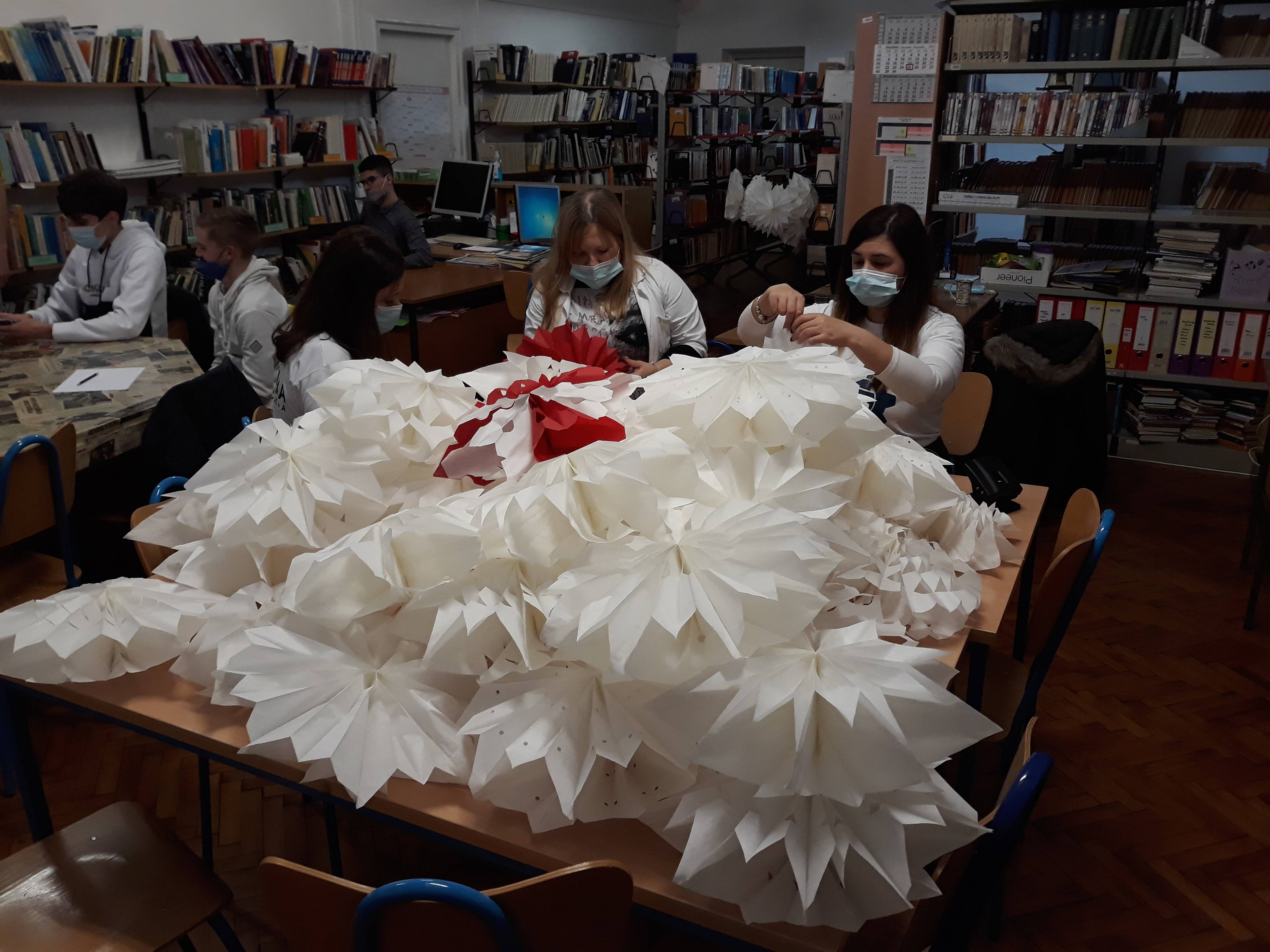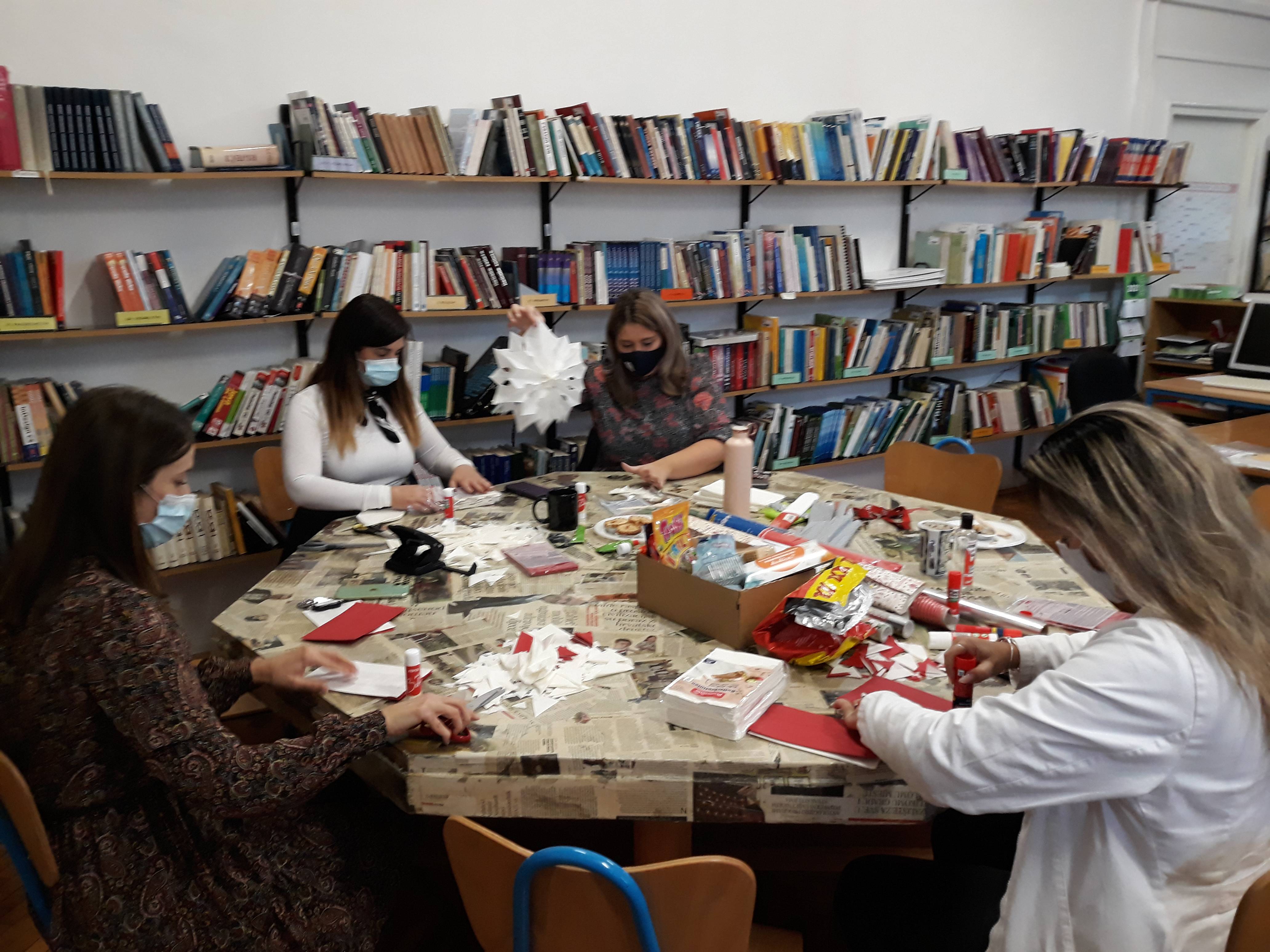 U čevrtak 25. studenoga nekolicina veselih i entuzijastičnih djelatnika naše škole i učenici izrađivali su, uz radio stanicu na kojoj sviraju samo božićne pjesme, u dobrom raspoloženju razne božićne ukrase koji će krasiti hodnike naše škole za vrijeme nadolazećih božićnih i novogodšnjih praznika koje jedva čekamo.