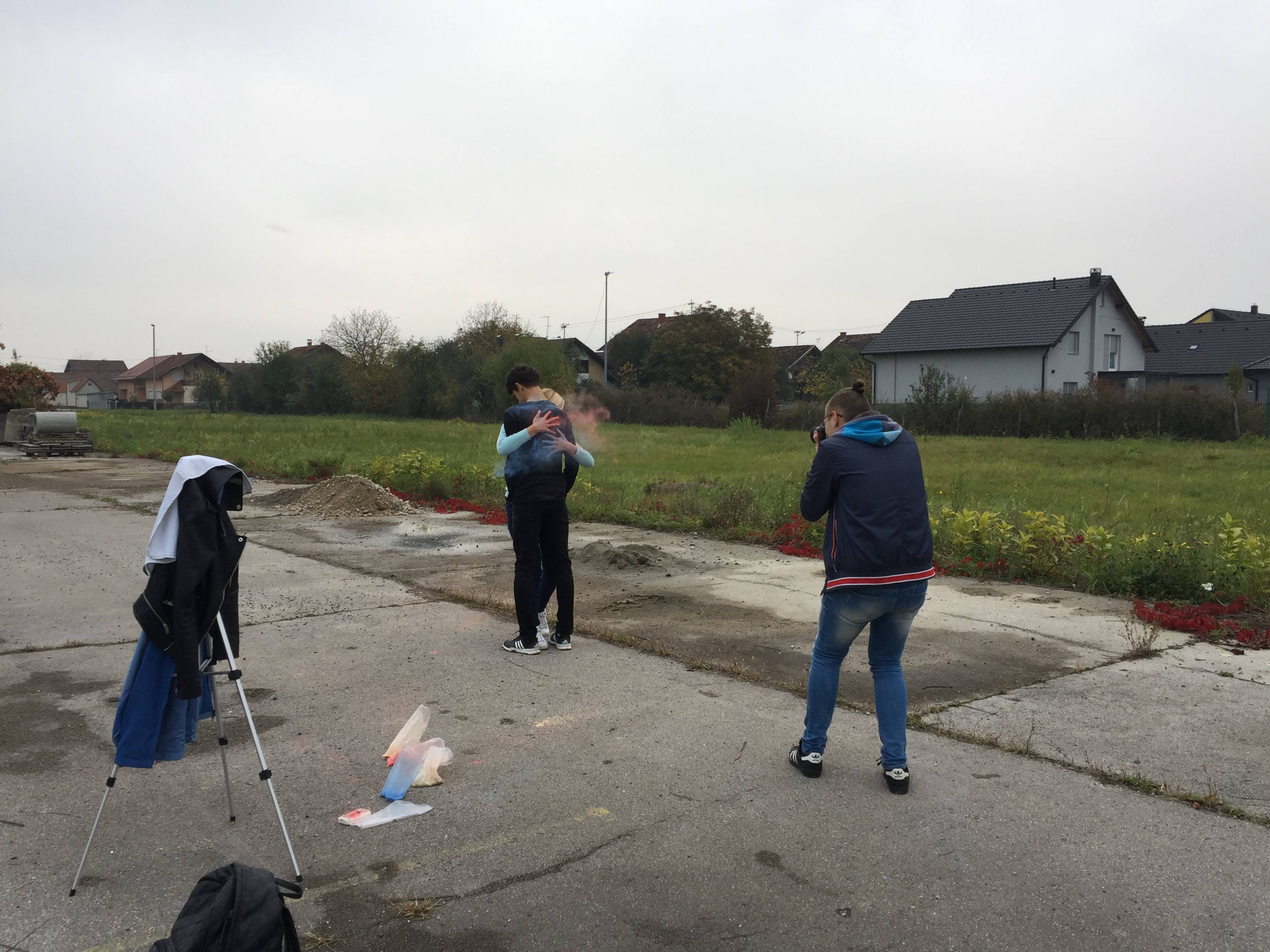 Filip Baotić fotografski je isječak usustavio trima skicama - fotografijama koje su konačan oblik zadobile tek u svojoj cjelokupnosti i sveobuhvatnosti. U suglasju je nemogućnosti komunikacije i međuljudskoga nerazumijevanja prikazano čovjekovo proturječje i razjedinjenost između zla, nehumanosti i bezumlja te dobrote, pravde i čestitosti. Mladić, koji je simbol nasilja, nalazi se u vrtlogu djevojčina zagrljaja, a koji je metafora humanosti, plahosti i dobrote. Boje njezina svijeta – crvena (simbolizira ljubav, nadahnuće i živost) i plava (simbolizira nevinost, krjepost i mir) zatomljuju njegov. Ona ga vodi putem samospoznaje – duhovnosti i čestitosti. Grčenje je djevojčinih prstiju prikazba njezine borbe i neodustajanja spram svijeta Onoga koji predstavlja njezino uporište i smiraj. Filip Baotić idejni je tvoritelj i fotograf, a rad je ostvaren u suradnji s Anjom Jovanovac, Markom Kučinićem (protagonisti idejne zamisli) i Norom Jovanovac.