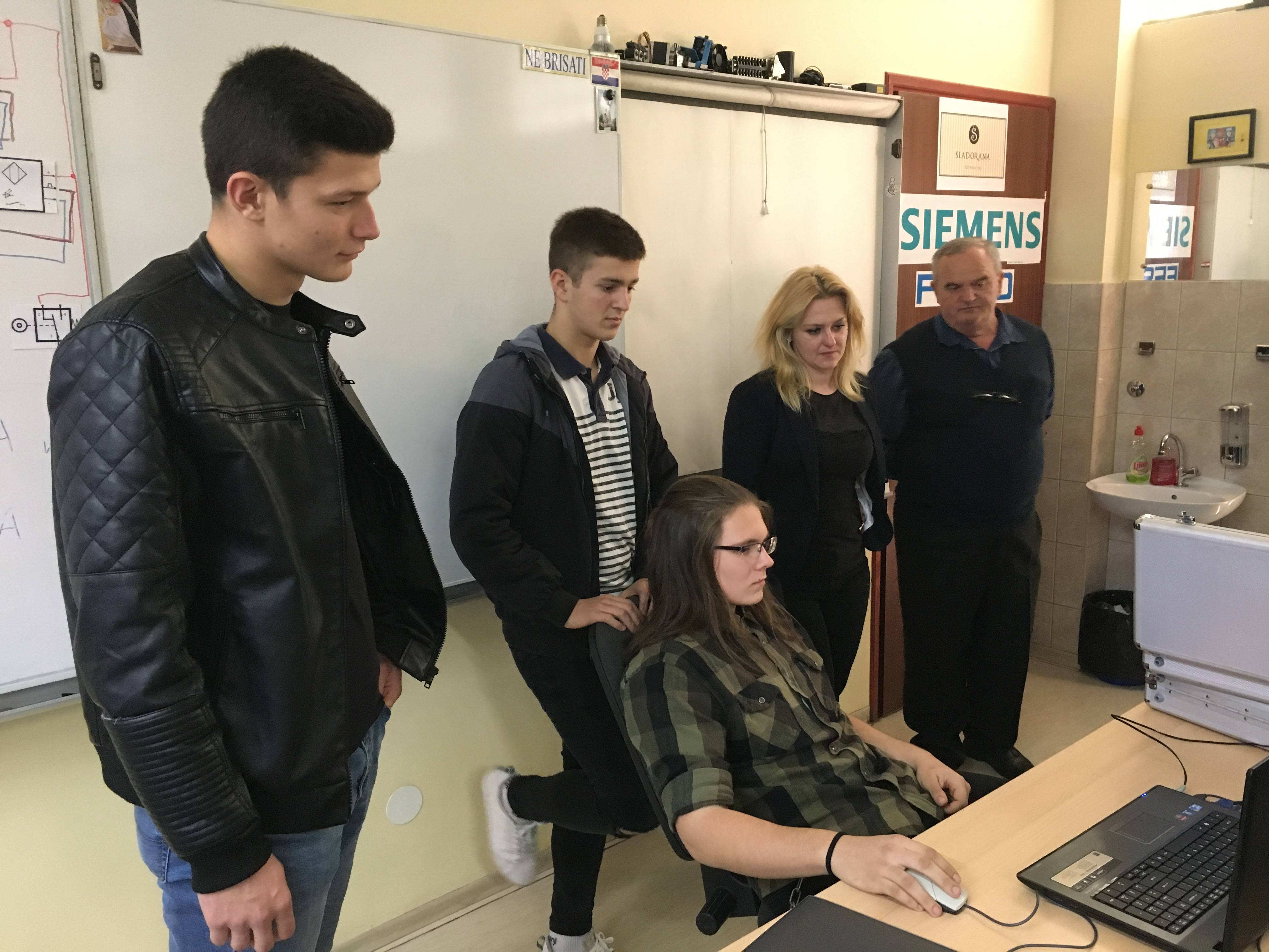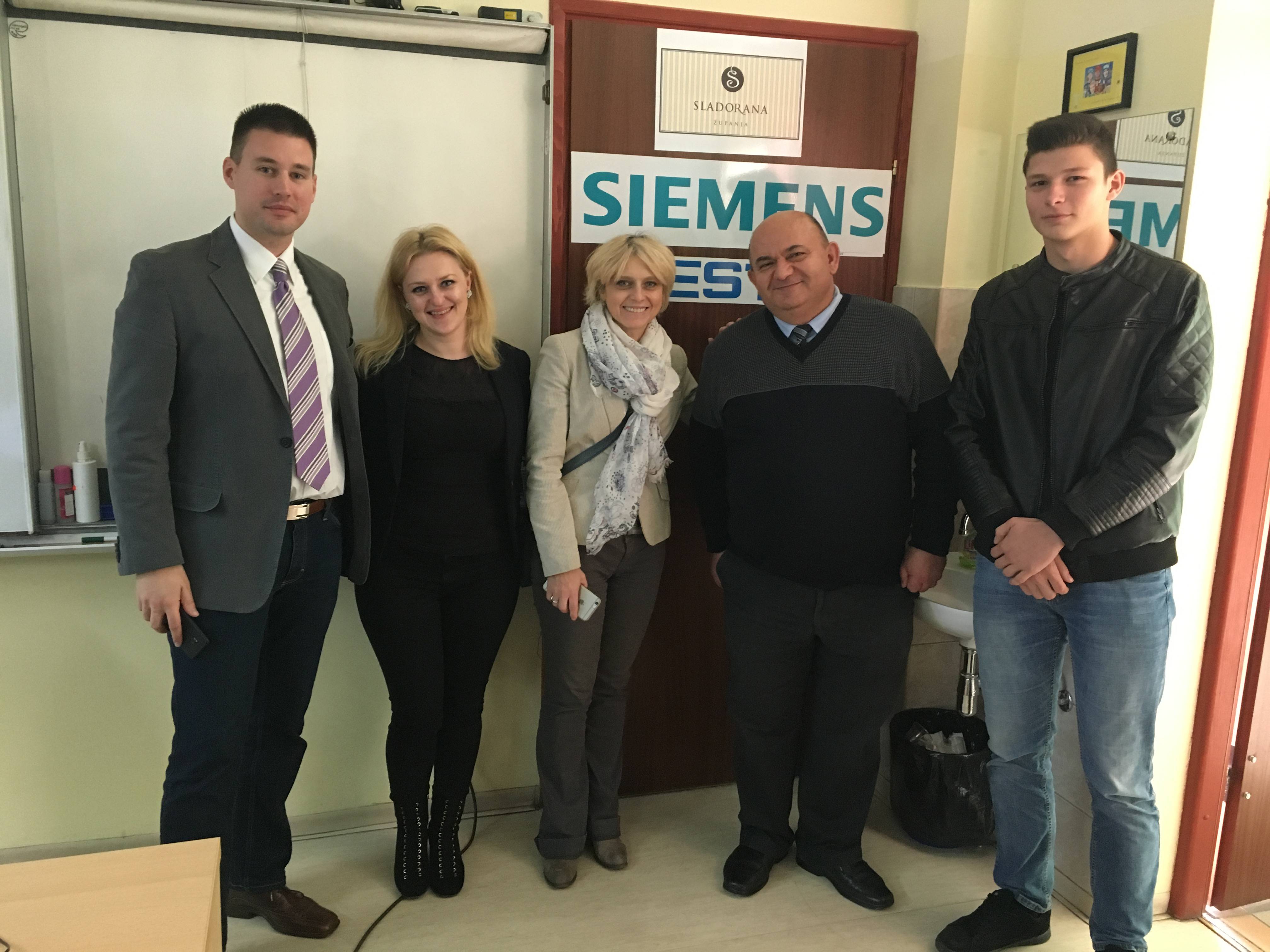 Marko Bunić, dipl. ing. el. i Miroslav Dadić, dipl. ing. el. podsjetili su na uspješnu dugogodišnju suradnju s Tehničkom školom Županja i predstavili su didaktični program tvrtke Siemens.